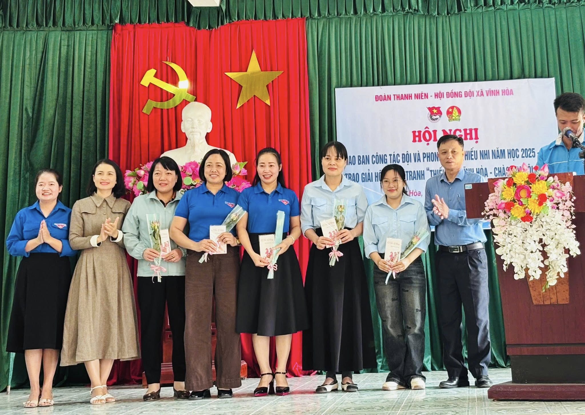 Thực hiện Chương trình công tác Đội và phong trào thiếu nhi năm học 2025-2026, sáng 14/11/2025, Đoàn thanh niên - Hội đồng đội xã Vĩnh Hoà tổ chức Hội nghị giao ban công tác Đội, trao giải Hội thi vẽ tranh “Thiếu nhi Vĩnh Hoà - Chào Đại hội Đoàn”