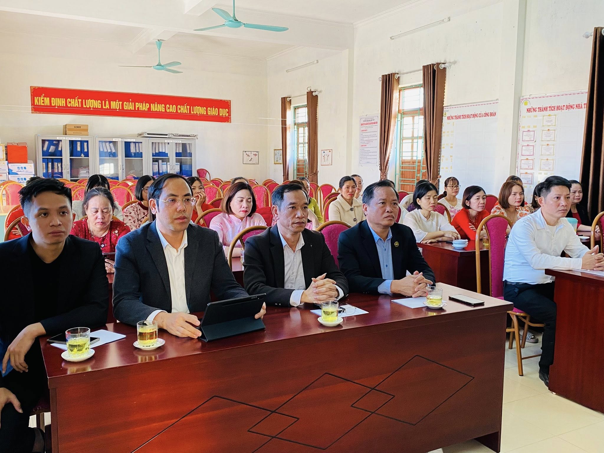 Đại biểu dự lễ kết đảng viênTham dự buổi lễ có đồng chí Vũ Thành Tô – Bí thư Đảng uỷ, Chủ tịch HĐND xã; đồng chí Vũ Văn Tường - UVBTV, Phó Chủ tịch UBND xã, đồng chí Đào Xuân Luân - UVBTV, Trưởng Ban Xây dựng Đảng; đồng chí Nguyễn Văn Tuấn - Đảng uỷ viên, Chánh Văn phòng Đảng uỷ ; Ban Giám hiệu nhà trường cùng toàn thể đảng viên trong Chi bộ. Buổi lễ là dấu mốc quan trọng, thể hiện sự quan tâm của Chi bộ Trường Mầm non Hiệp Hòa đối với công tác xây dựng Đảng, đồng thời ghi nhận những nỗ lực, rèn luyện và phấn đấu của các quần chúng ưu tú trong suốt thời gian qua.