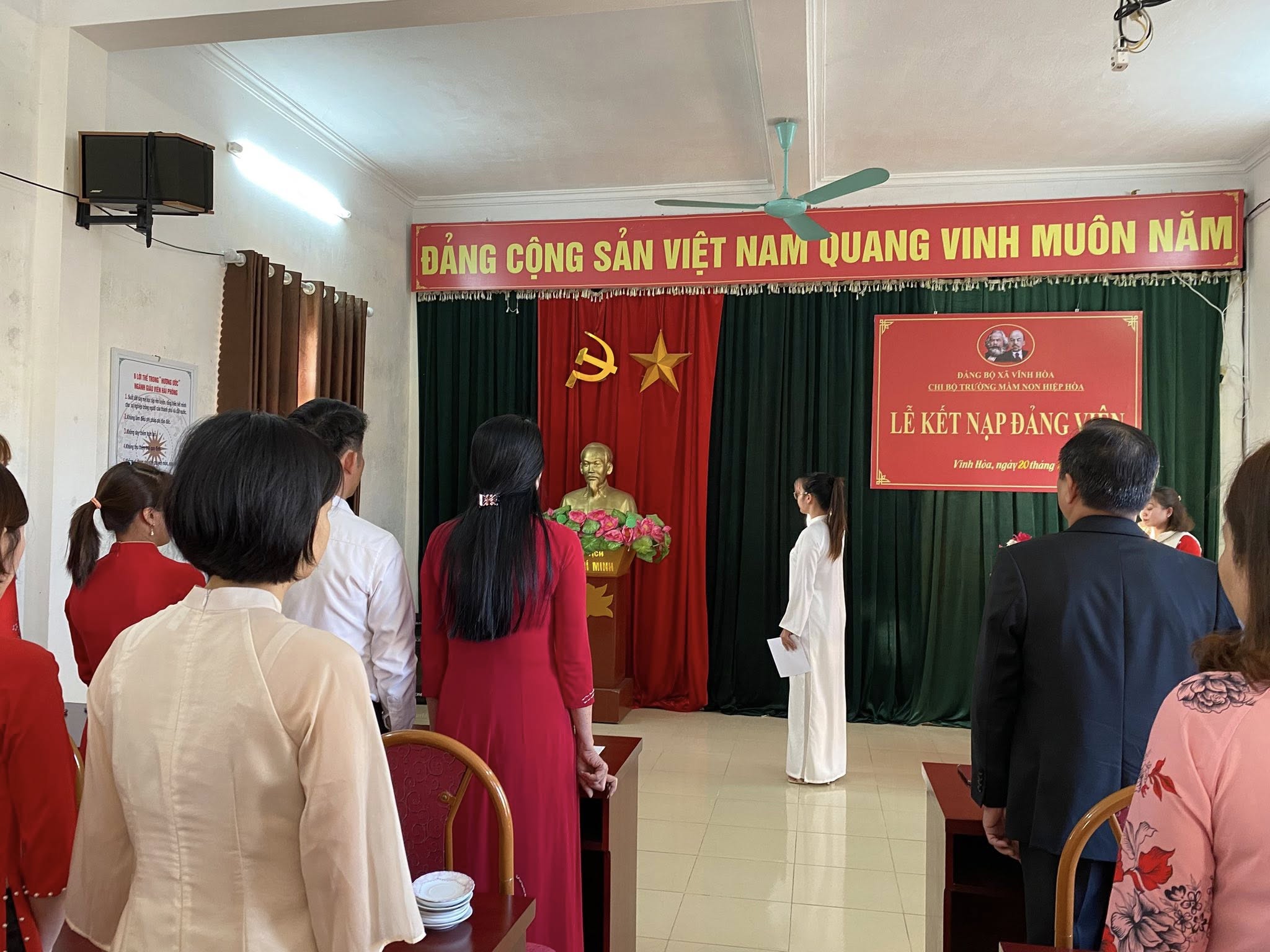 LỄ KẾT NẠP ĐẢNG VIÊN MỚI TẠI TRƯỜNG MẦM NON HIỆP HÒA, XÃ VĨNH HÒA, THÀNH PHỐ HẢI PHÒNG