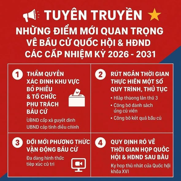 TUYÊN TRUYỀN: NHỮNG ĐIỂM MỚI QUAN TRỌNG VỀ BẦU CỬ QUỐC HỘI & HĐND CÁC CẤP NHIỆM KỲ 2026 - 2031.